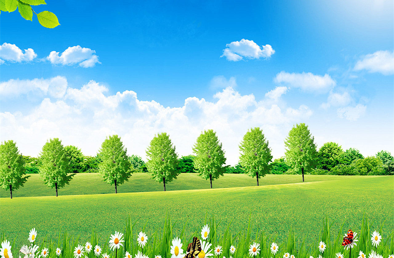 • 淡雅綠草地卡通PPT背景